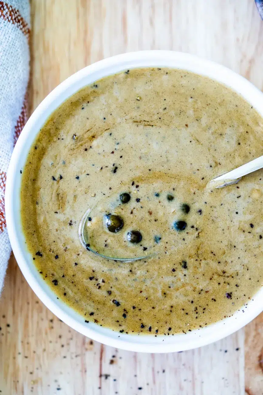 A thick, creamy, peppery sauce – your steak’s best friend, made with pantry staples (no brandy required!).